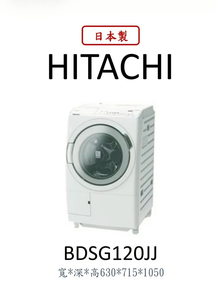 日立HITACHI日本製滾筒洗脫烘洗衣機BD-SG120JJ