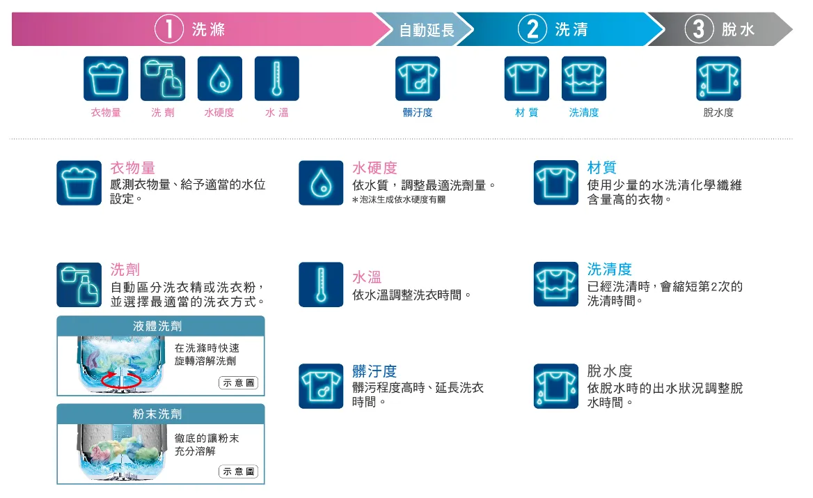 自動區分洗劑種類 調整最適洗滌