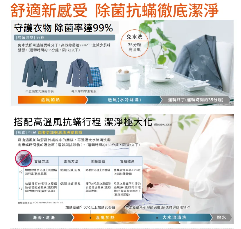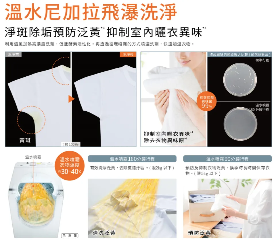 溫水噴霧+尼加拉飛瀑洗淨 預防衣物泛黃