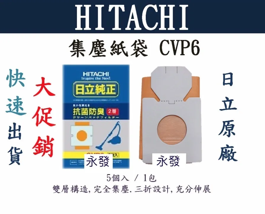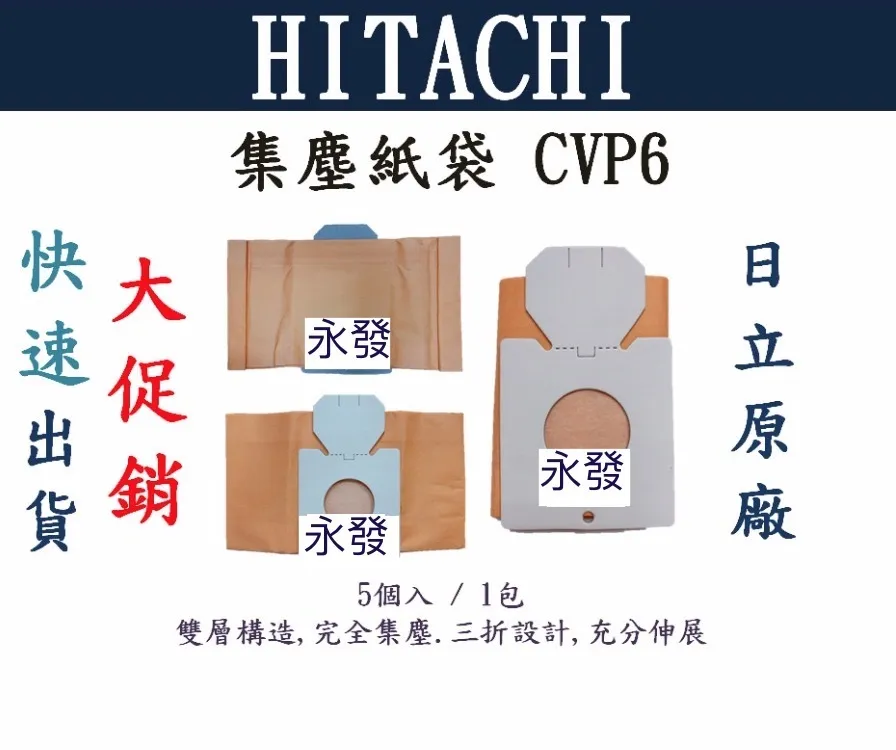 #日立吸塵器 #日立吸塵器集塵紙袋 #日立集塵袋 #日立原廠集塵袋 #日立原廠CVP6 #CVP6