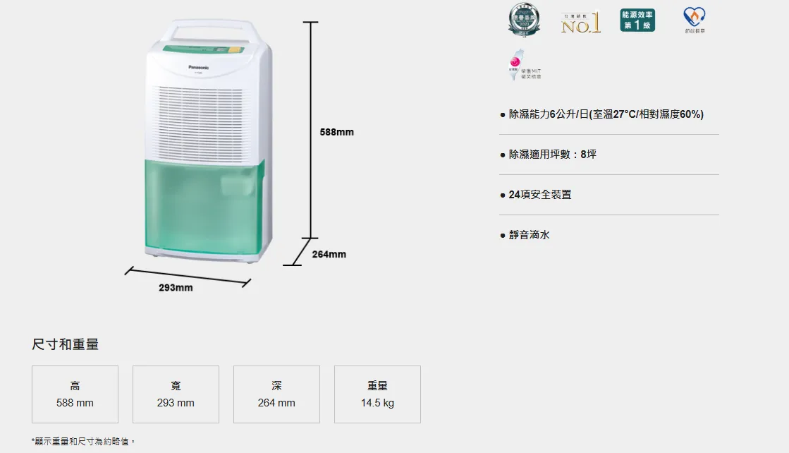 Panasonic除濕機專用型6公升/日F-Y12ES