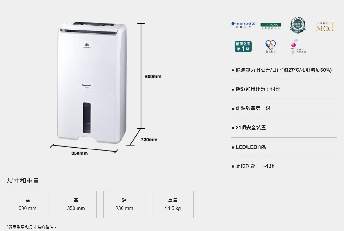 Panasonic除濕機專用型11公升/日F-Y22EN