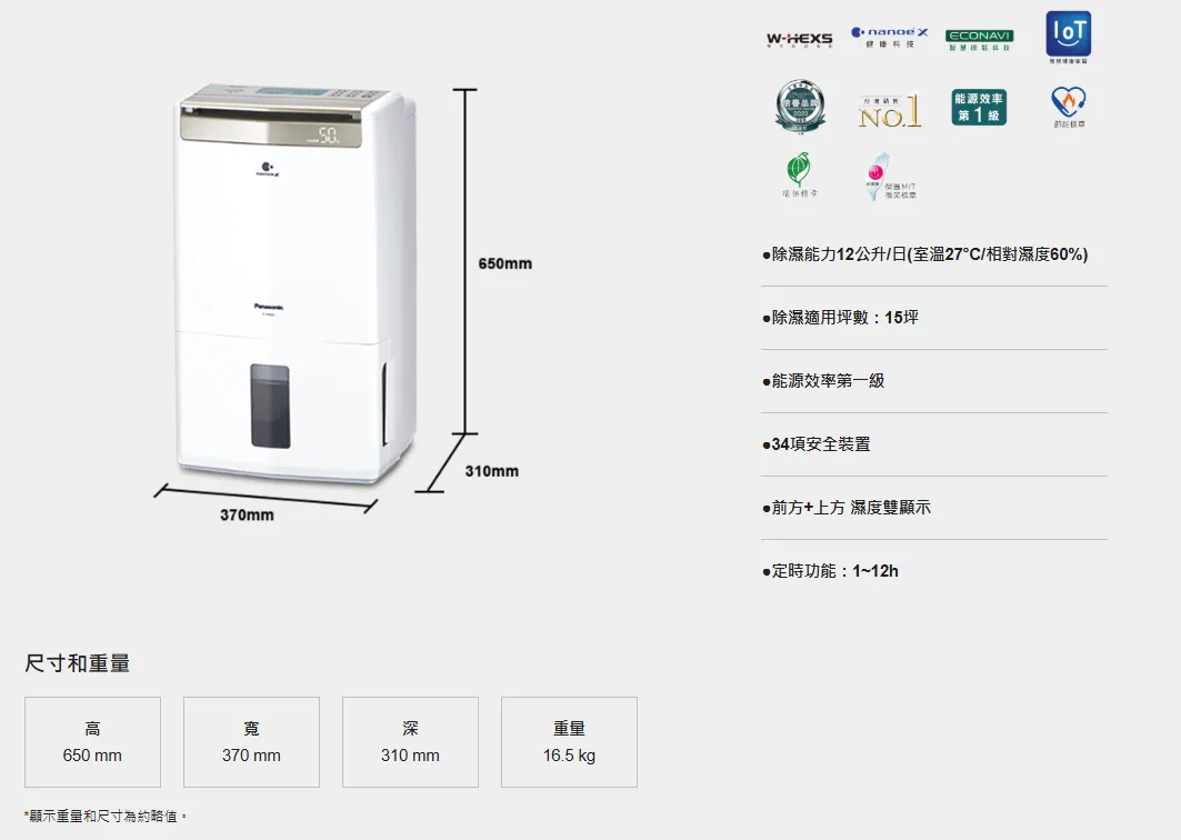Panasonic高效除濕機型12公升/日F-Y24GX