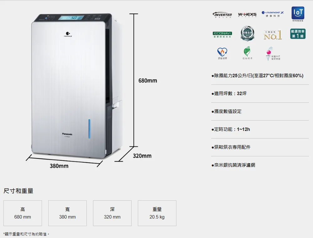 Panasonic除濕機變頻高效型25公升/日F-YV50LX