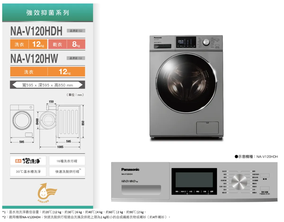 Panasonic 國際強效抑菌系列 變頻滾筒洗衣機NA-V120HDH