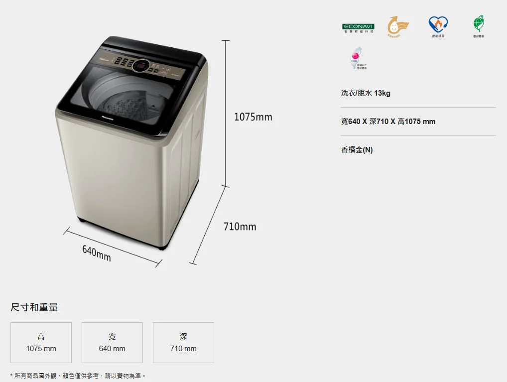 Panasonic 國際變頻直立洗衣機 NA-V130NZ-N