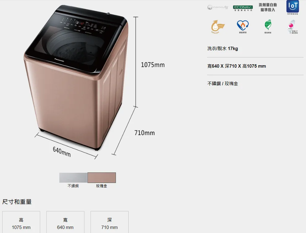 Panasonic 國際雙科技變頻直立溫水洗衣機 NA-V170NM-PN