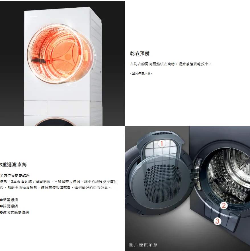 ● 洗衣 17kg、烘衣 15kg