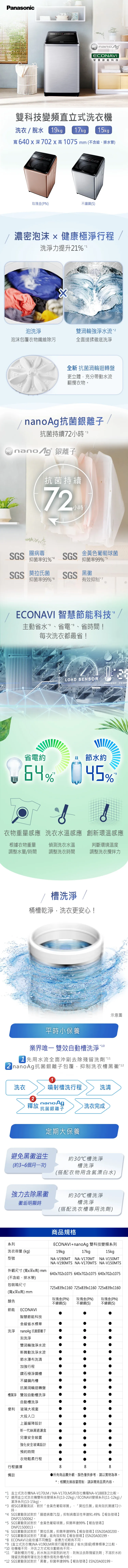 Panasonic 國際雙科技變頻直立式洗衣機 NA-V190MTS
