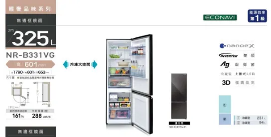 Panasonic 國際玻璃變頻2門電冰箱 NR-B331VG-X1