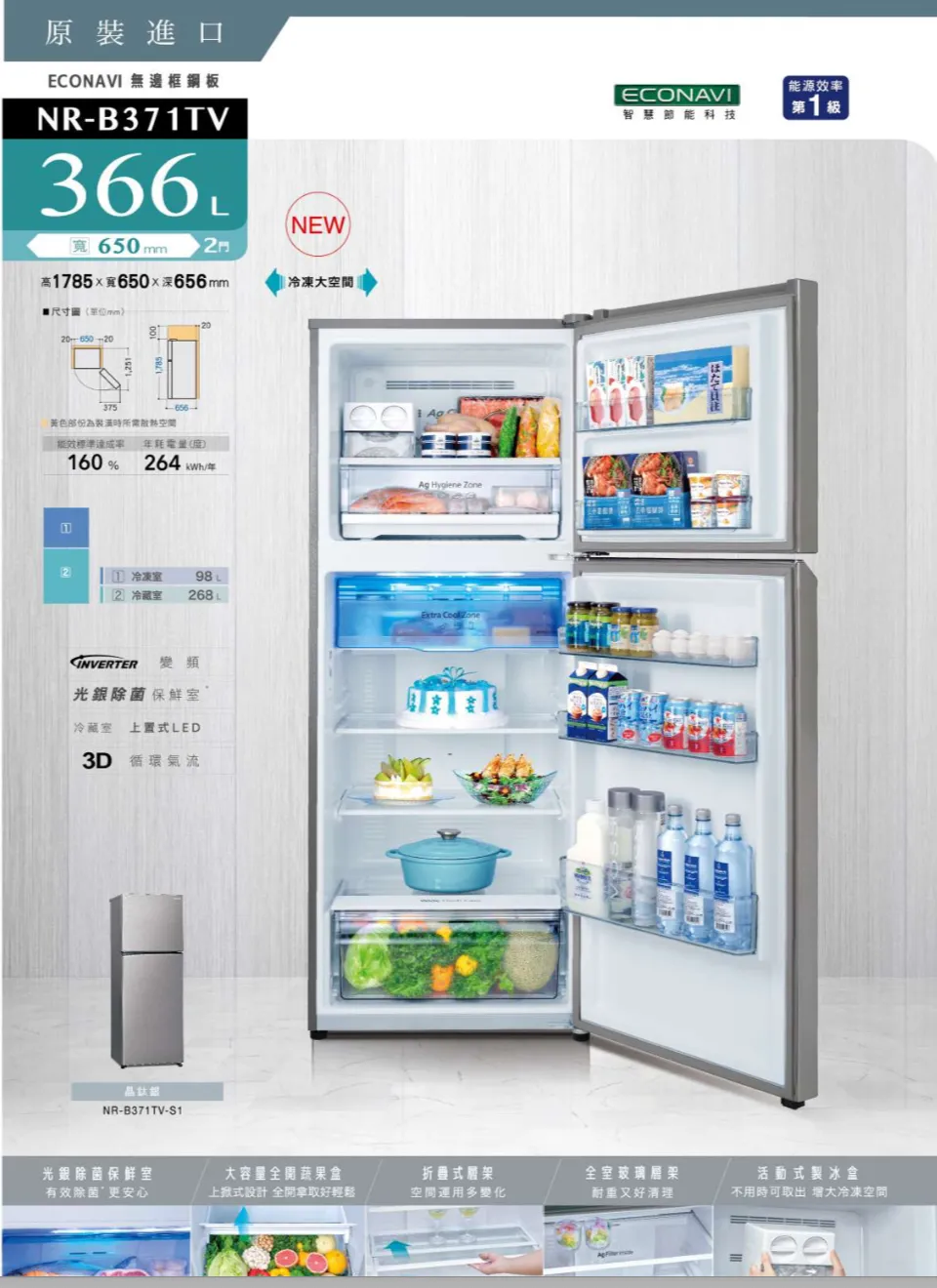 Panasonic 國際鋼板2門電冰箱NR-B371TV-S1
