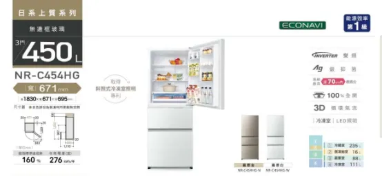 Panasonic 國際玻璃變頻3門電冰箱 NR-C454HG