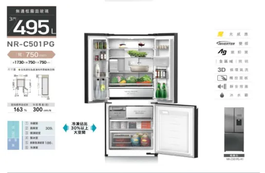 Panasonic 國際玻璃變頻3門電冰箱 NR-C501PG-H1