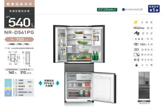 Panasonic 國際玻璃變頻4門電冰箱 NR-D541PG-H1