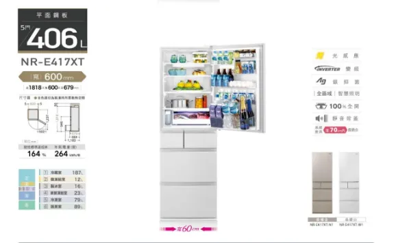 Panasonic 國際日本製-平面鋼板5門電冰箱 NR-E417XT
