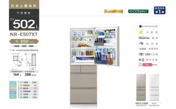 Panasonic 國際日本製-平面鋼板5門電冰箱 NR-E507XT