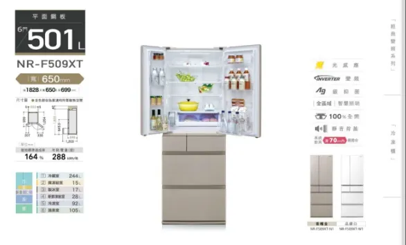 Panasonic 國際日本製-無邊框玻璃6門電冰箱 NR-F509XT