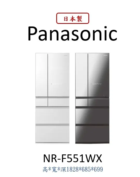 Panasonic 國際日本製-無邊框玻璃6門電冰箱 NR-F551WX