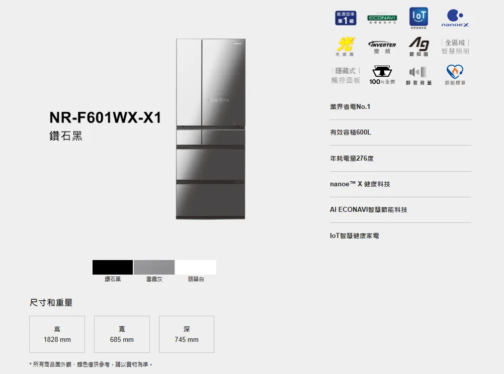 Panasonic 國際日本製-無邊框玻璃6門電冰箱 NR-F601WX