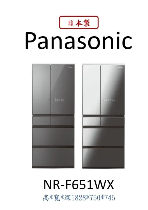 Panasonic 國際日本製-無邊框玻璃6門電冰箱 NR-F651WX
