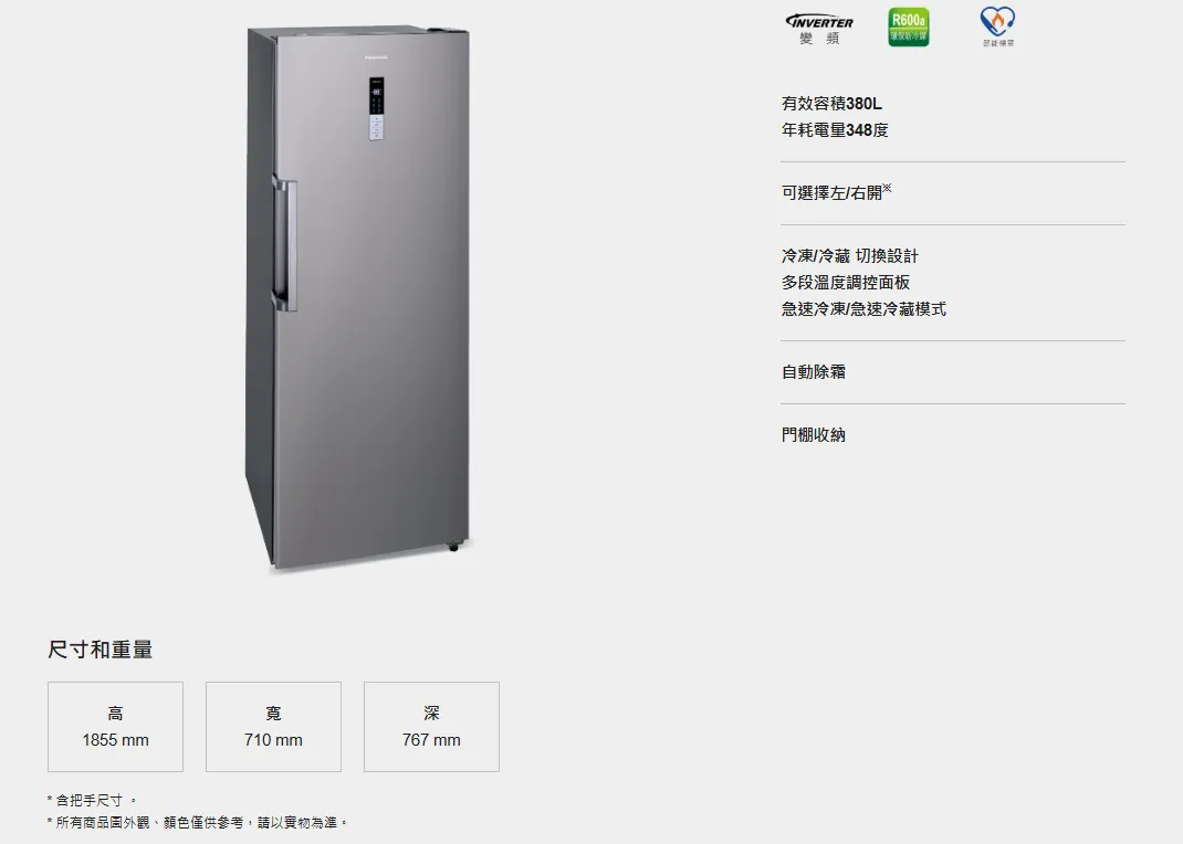 Panasonic 國際直立式冷凍櫃NR-FZ383AV-S