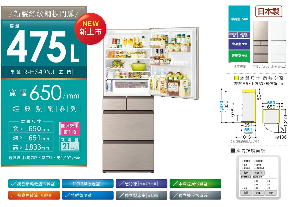 日立HITACHI日本製電冰箱-五門RHS49NJ-475L