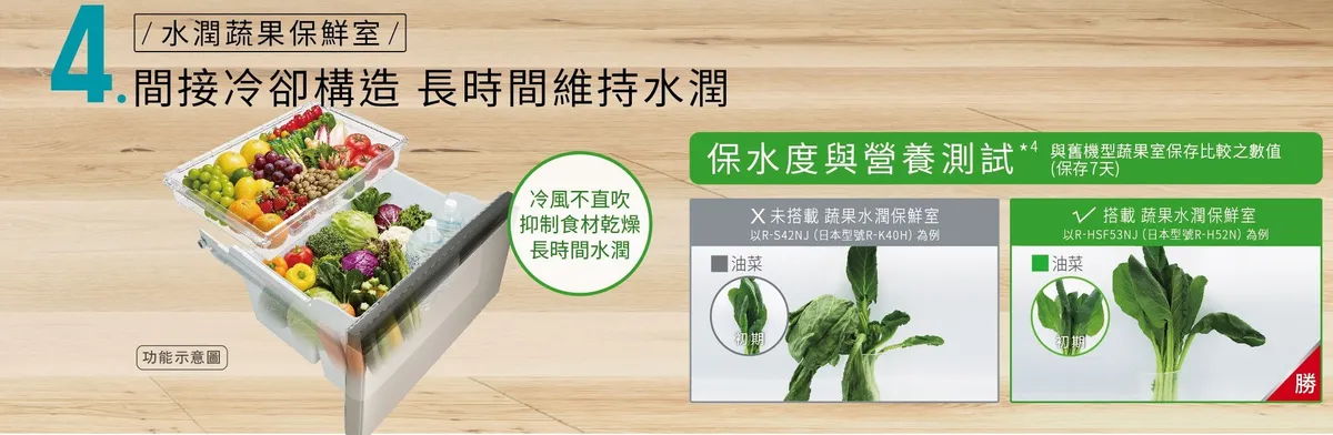• 水潤蔬果保鮮 間接冷卻抑制乾燥