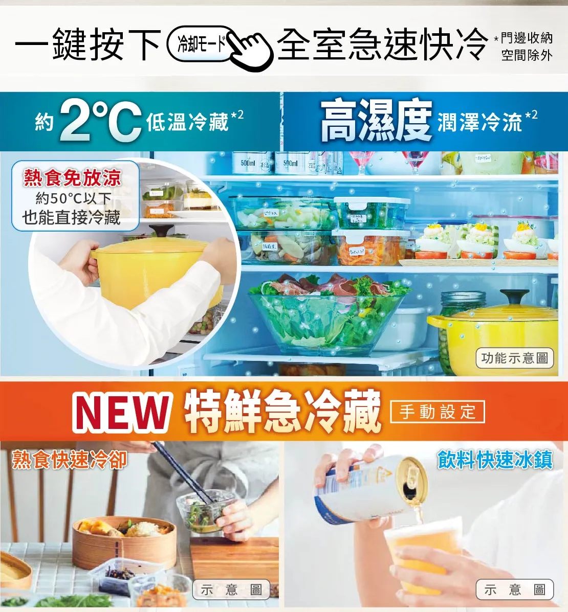 含基本運送+拆箱定位+舊機回收 全新髮絲紋鋼板 簡約美型無邊框設計 全室熱食免放涼 避免細菌滋生 安心美味 獨立鎖濕低溫冷藏室,雙冷卻器雙循環系統 水潤蔬果保鮮 間接冷卻抑制乾燥 -1℃特鮮冰溫室 不結凍新鮮保存
